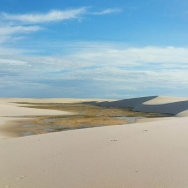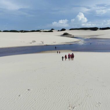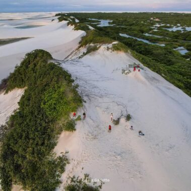 A Travessia dos Lençóis Maranhenses 2026 foi desenhada para quem busca atravessar o parque por uma lógica diferente da maioria das operações comerciais. O roteiro segue uma rota menos explorada, conectando lagoas, campos de dunas e comunidades tradicionais por um percurso contínuo, progressivo e coerente com a dinâmica natural do território. Ao longo do caminho, o deslocamento não se limita a pontos turísticos conhecidos, mas atravessa setores mais amplos e silenciosos, onde o caminhar ganha protagonismo e a leitura da paisagem acontece de forma mais profunda.