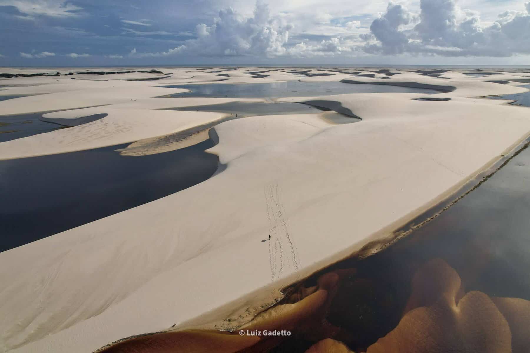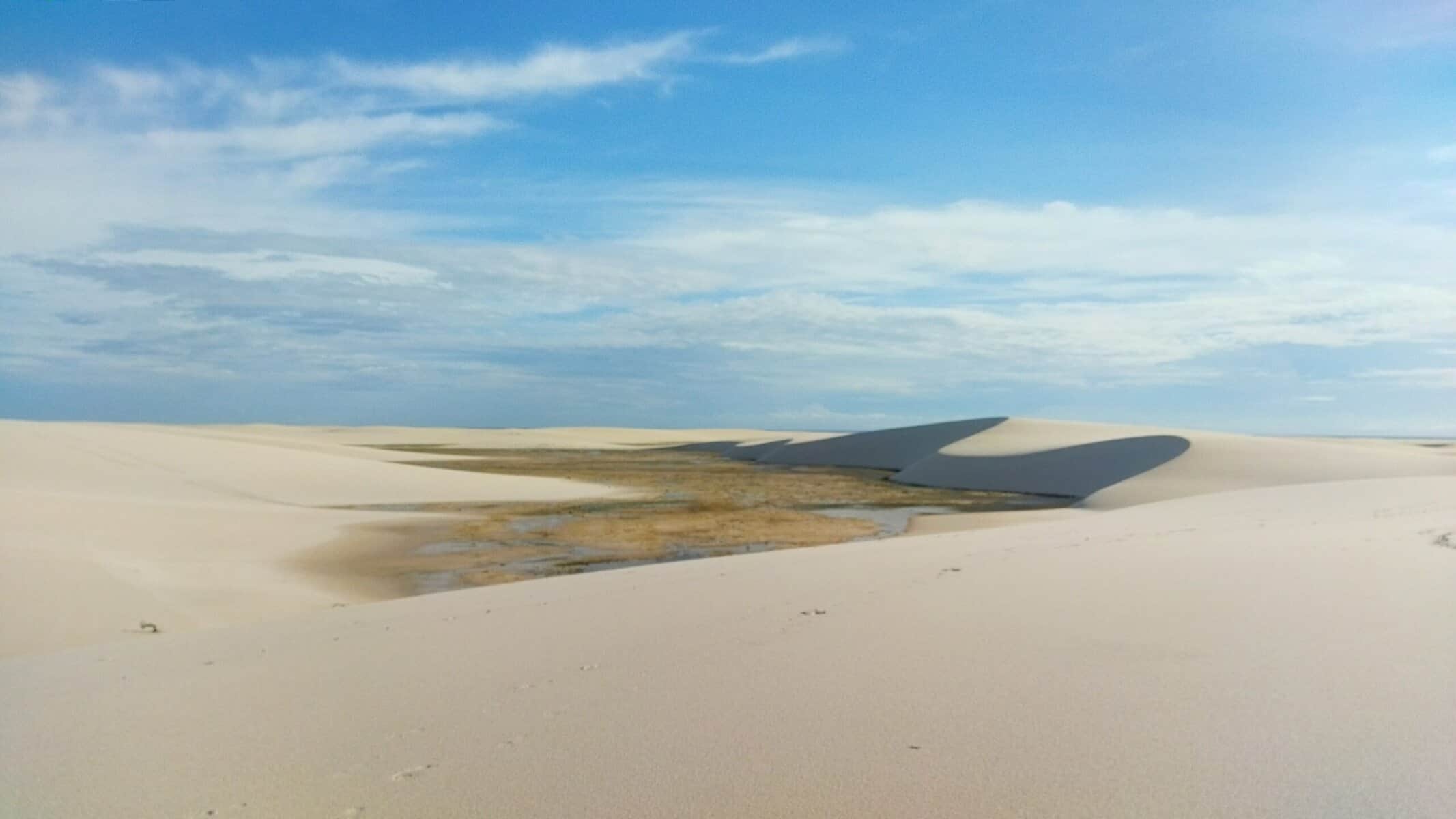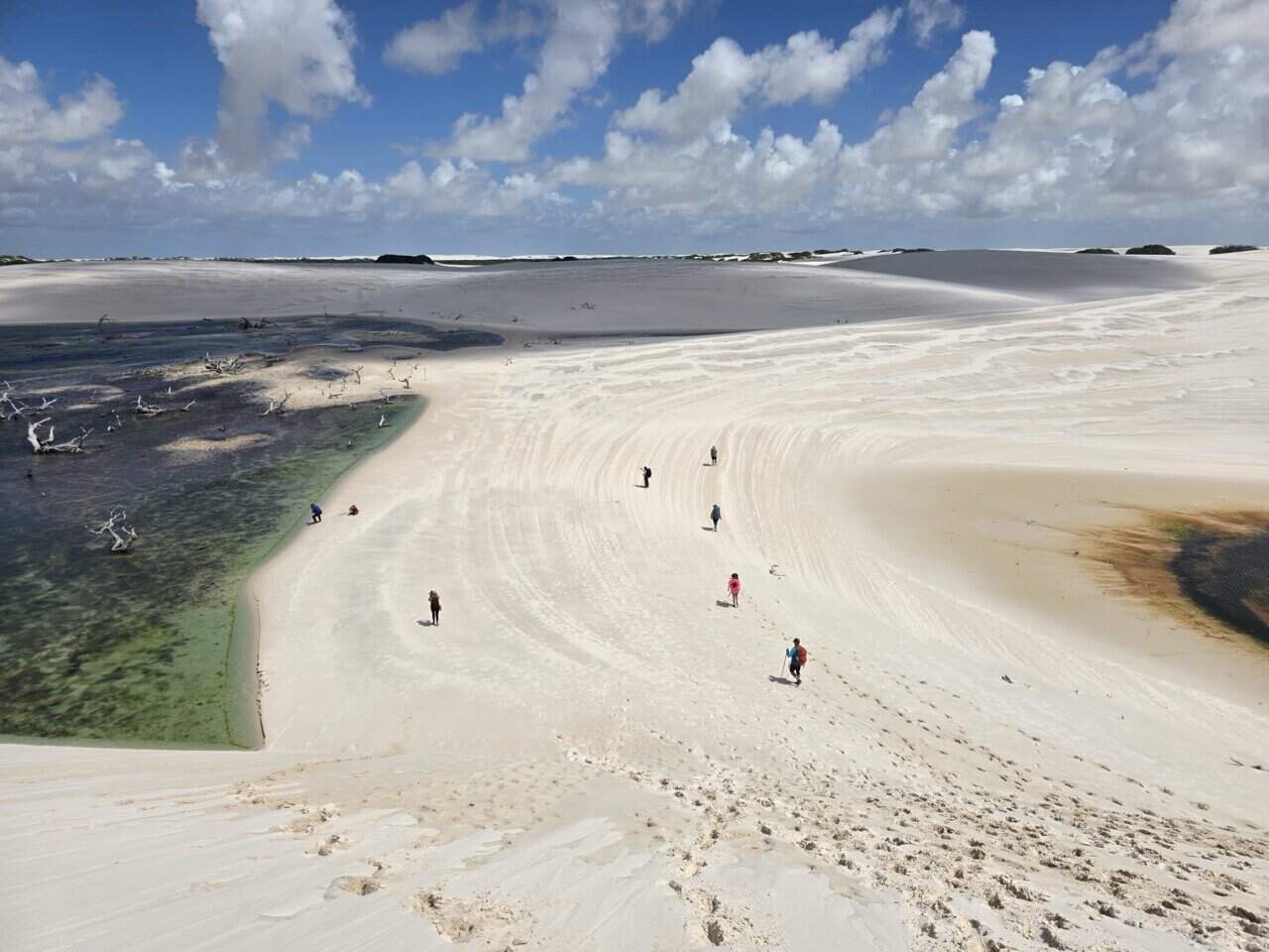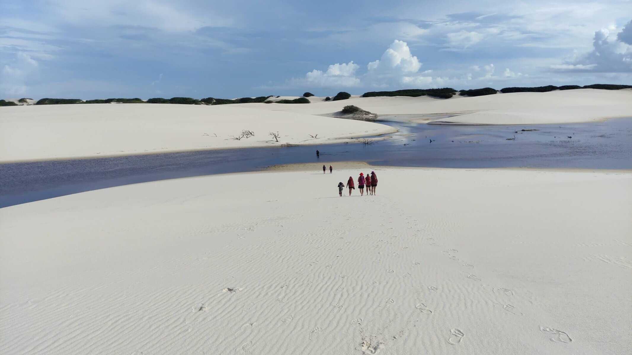 A Travessia dos Lençóis Maranhenses 2026 foi desenhada para quem busca atravessar o parque por uma lógica diferente da maioria das operações comerciais. O roteiro segue uma rota menos explorada, conectando lagoas, campos de dunas e comunidades tradicionais por um percurso contínuo, progressivo e coerente com a dinâmica natural do território. Ao longo do caminho, o deslocamento não se limita a pontos turísticos conhecidos, mas atravessa setores mais amplos e silenciosos, onde o caminhar ganha protagonismo e a leitura da paisagem acontece de forma mais profunda.