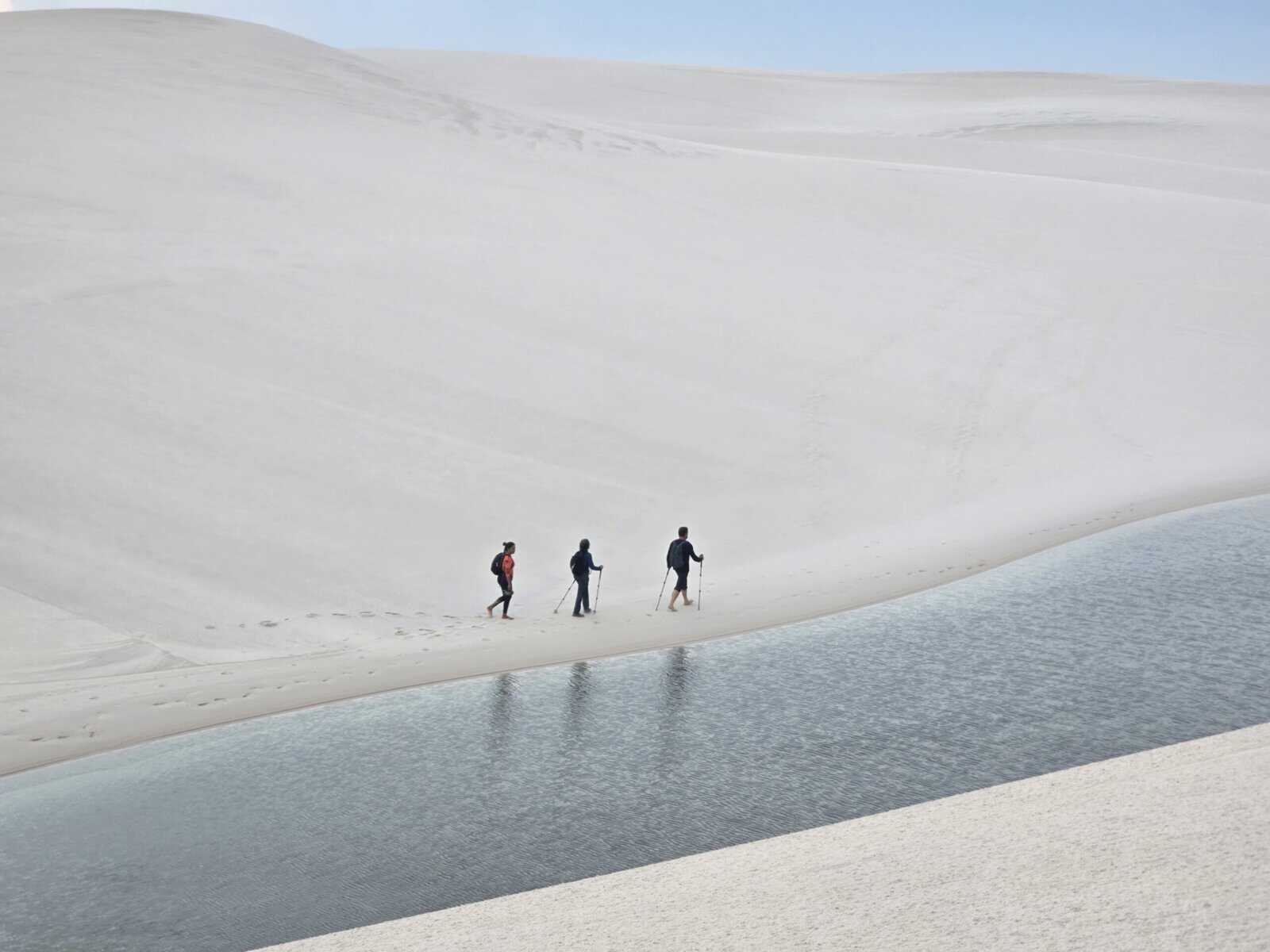 As saídas ao amanhecer, o uso consciente dos horários de menor insolação e a escolha criteriosa dos pernoites permitem uma experiência mais fluida, segura e integrada ao ambiente. A presença em vilarejos como Baixa Grande, Queimada dos Britos, Ponta Verde e América não é apenas um apoio logístico, mas parte essencial da proposta, conectando o percurso à vida cotidiana do parque. Esta é uma travessia pensada não para acumular paisagens rapidamente, mas para atravessar os Lençóis Maranhenses com profundidade, por caminhos menos evidentes e em diálogo direto com o território.